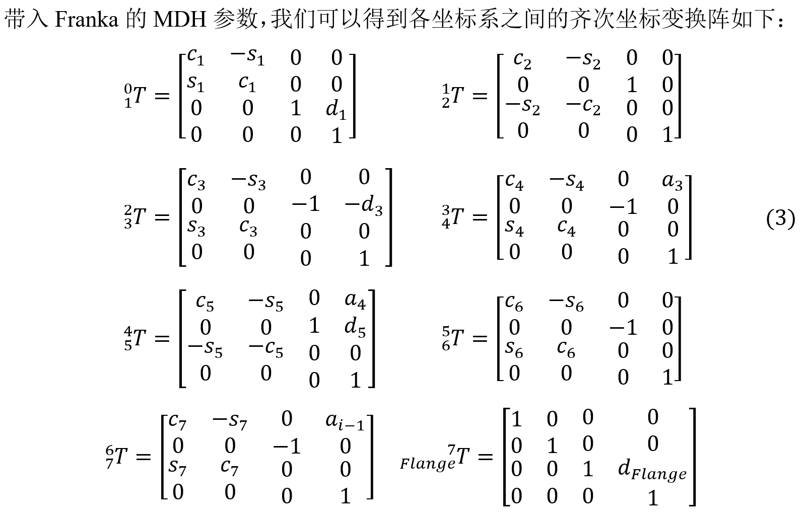 但是如果你用的是改进DH参数法进行建模,核心公式(3.30)应该是: