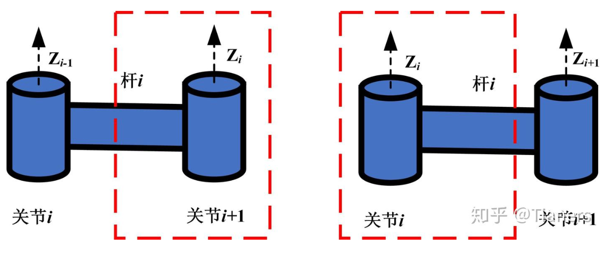 我们知道一个连杆有两端,一端离基座近,一端离基座远。简单的来说,标准DH将坐标系i建立在连杆i离基座近的一端,改进DH建立在离基座远的一端。