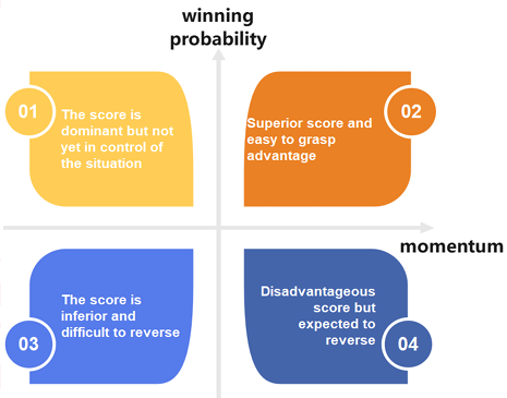 词典中对势头的定义是 “通过运动或一系列事件获得的力量或影响力”。在体育比赛中,我们总能清晰地感受到连胜队伍的势头,它会产生一种神秘的力量使其充满动力。但谈及势头时,我们更多是对事物的抽象理解。为让比赛数据发挥更大作用,我们需要对势头进行量化,首先要明确势头与哪些因素相关。