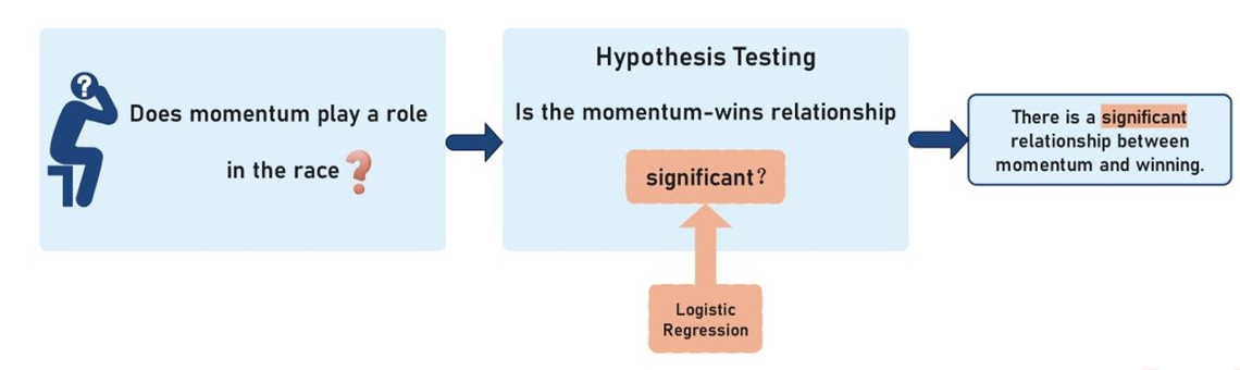 基于前文的讨论和建立的模型,我们的初始假设是 “势头” 对比赛结果有显著影响,即运动员的获胜情况与势头相关,而非如教练所认为的那样是表现的随机波动。为证实这一观点,我们采用假设检验和逻辑回归分析作为方法,阐明运动员势头与得分之间的关系。