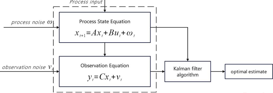 状态方程:描述系统状态(通常无法直接观测)的时间演化,公式如下:xt+1=Axt+But+ωt(11)其中,xt表示 t 时刻的状态向量;A为状态转移矩阵;ut为控制输入向量;B为控制输入矩阵;ωt为过程噪声,代表模型的不确定性。