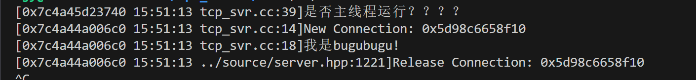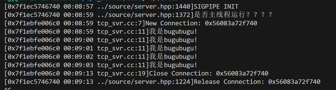 这里的测试结果和前面没有实现TcpServer模块结果几乎一样:唯一不同的是 Release Connection: 0x56083a72f740 执行的线程不一样