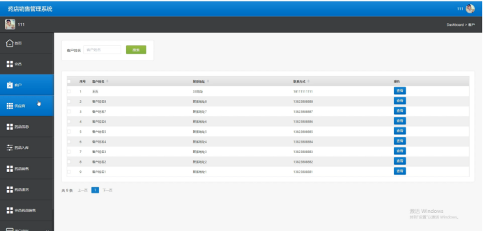 客户;在客户页面输入客户姓名进行搜索客户列表,并对客户详细信息进行查看操作;如图5-12所示: