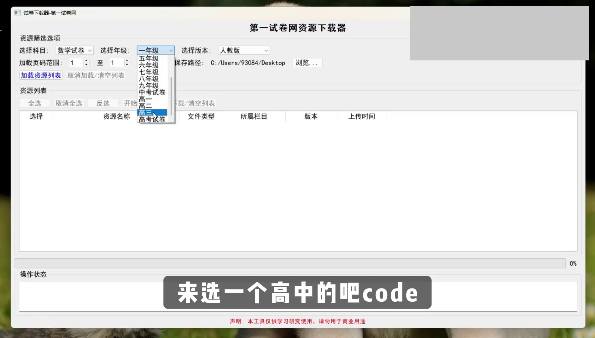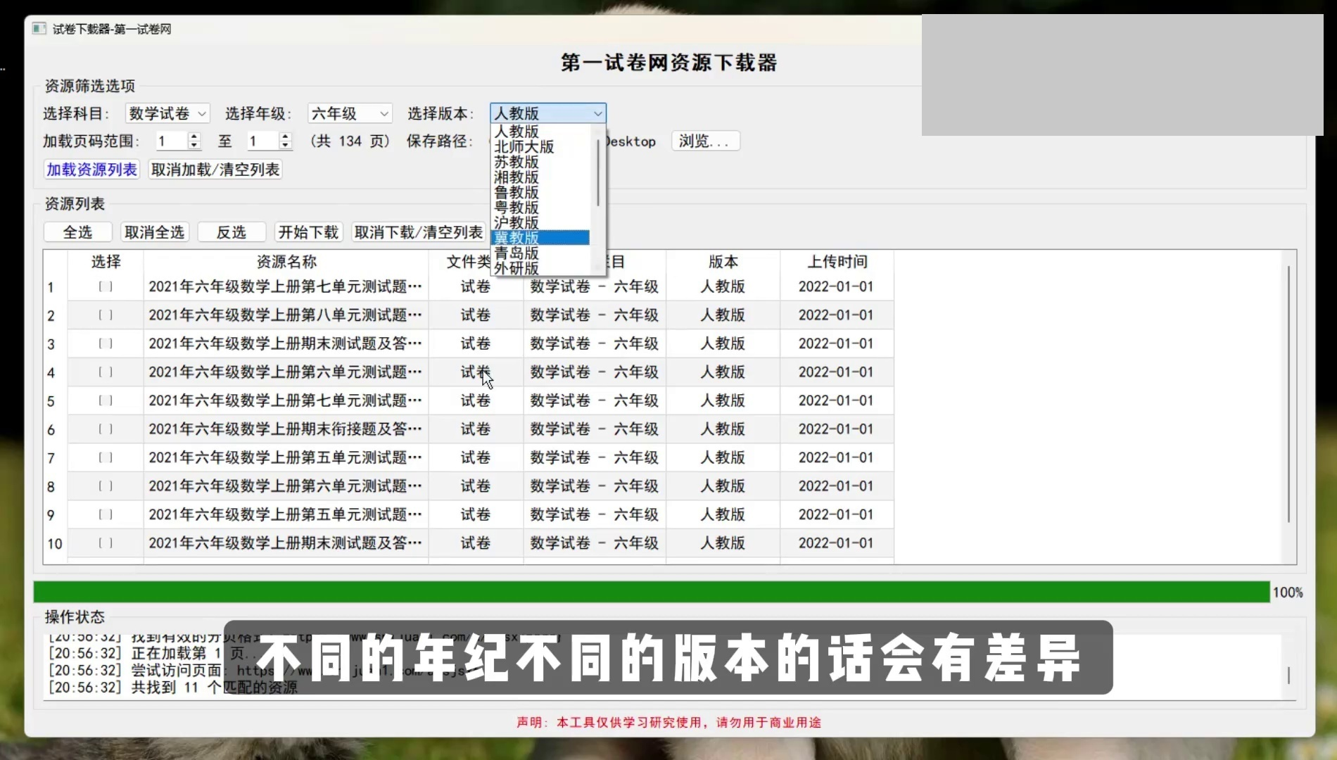 第二步:选择与下载 软件会快速列出符合条件的所有试卷资源(通常会显示标题和年份)。你可以逐个勾选需要的试卷,也可以使用“全选”功能。选择好后,在下方设置一个保存位置(如桌面或专门的试卷文件夹),然后点击“下载”按钮。