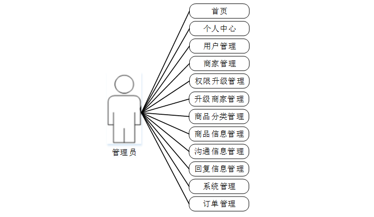 管理员的功能是最高的,可以对系统所在功能进行查看,修改和删除,包括对用户信息进行管理。管理员用例如下:
