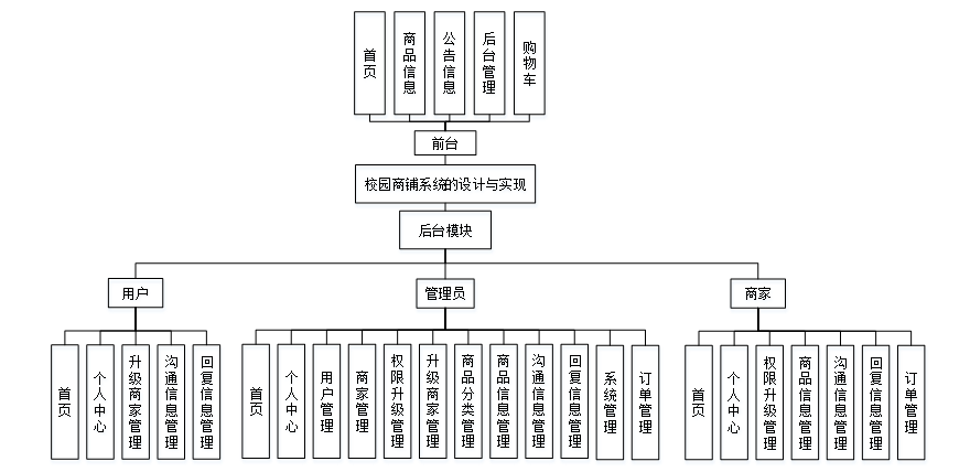 校园商铺系统综合网络空间开发设计要求。目的是将动校园商铺管理通过网络平台将传统方式转换为在网上管理,完成校园商铺管理的方便快捷、安全性高障、目标明确。校园商铺系统可以将功能划分为管理员使用功能,用户使用功能和商户使用功能。