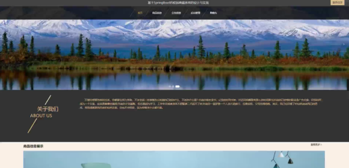 当人们打开系统的网址后,首先看到的就是首页界面。在这里,人们能够看到校园商铺系统的导航条和关于我们等。系统首页界面如图5-1所示: