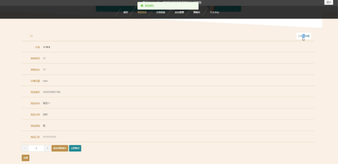 在商品信息页面的输入店铺名称,商品名称,价格进行查询商品详细信息;商品详细信息页面,并进行收藏,添加到购物车,立即购买,评论等操作;如图5-3所示: