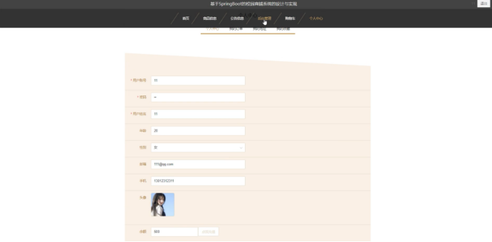 个人中心:用户和商家可以管理个人信息,查看订单记录、商品信息等。