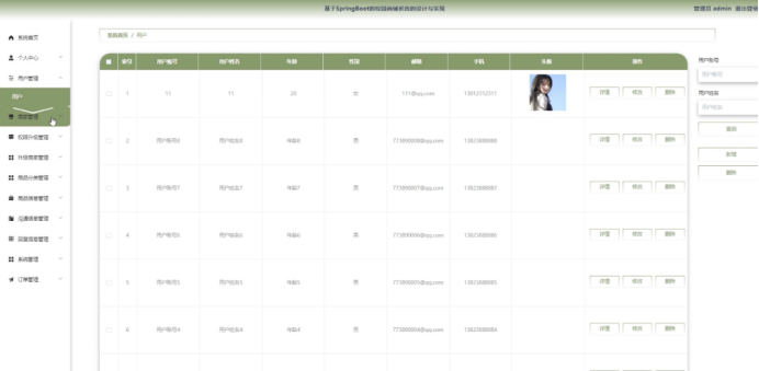 用户管理:管理员可以对用户信息进行查询、新增、修改和删除。
