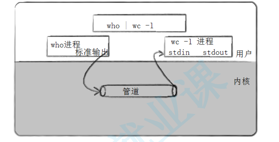 - who 进程:它的标准输出(stdout)被重定向到管道的写端,不再直接输出到终端。