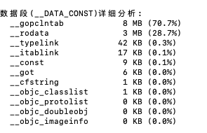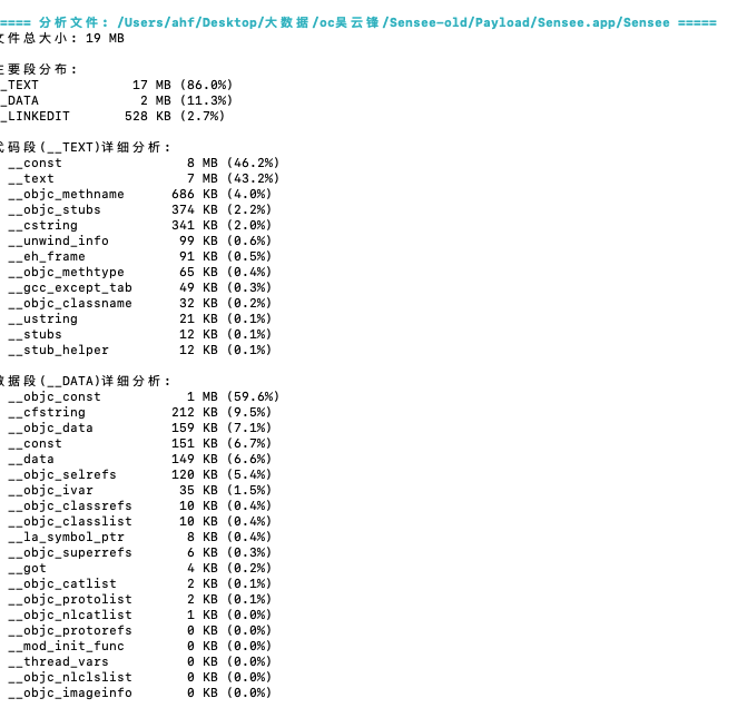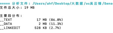 这个二进制总共有19M的大小, _text段 占据主要体积17M, 其他段占据了较小体积, 那么我们首先关注_TEXT 段