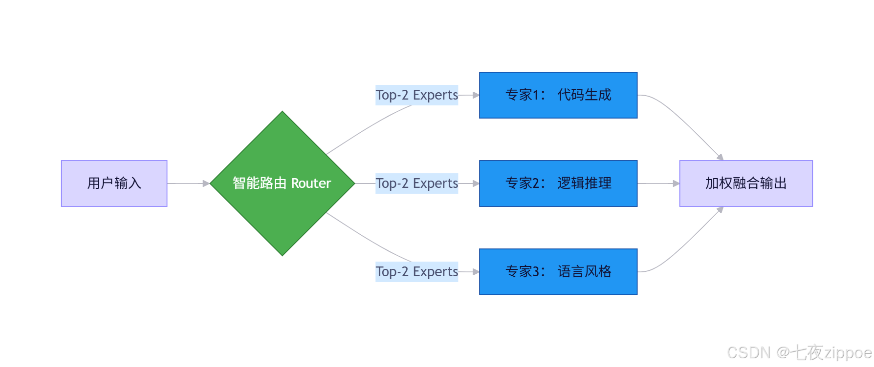 💡 笔者锐评:MoE本质是“术业有专攻”。就像医院分科——你感冒不会挂神经外科,模型推理也该“精准调度”。DeepSeek的路由算法(Gating Network)经我实测,在中文场景下专家选择准确率超92%,比早期MoE方案稳太多。