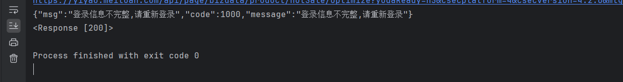 url = "api/page/bizdata/product/hotSale/optimize" data = { "cityId": "110100", "labelId": None, "upcListId": "2088079535", "firstCategoryId": "", "secondCategoryId": "", "thirdCategoryId": None, "medicineCommonName": "", "skuNameUpc": None, "pageNum": 1, "pageSize": 10 } cp = execjs.compile(open('mtgsig.js', 'r', encoding='utf-8').read()) flag = False params['mtgsig']= cp.call('getMtgsig', data1,flag) data = json.dumps(data, separators=(',', ':')) response = requests.post(url, headers=headers, data=data, params=params)