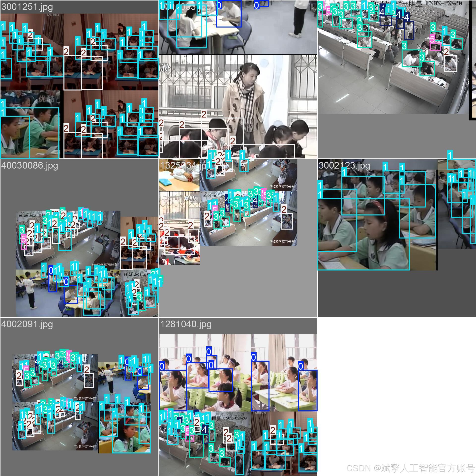 本系统采用YOLO格式标注的学生课堂行为数据集,共包含 6 类行为,用于训练、验证和测试基于 YOLOv12 的深度学习模型。数据集经过严格筛选和标注,确保模型能够准确识别课堂环境中的学生行为。