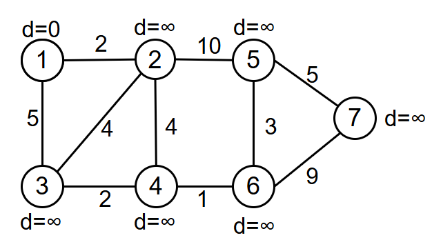 for(int i=1;i<=V;i++) d[i]=INF;