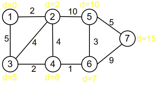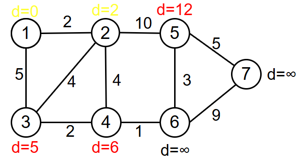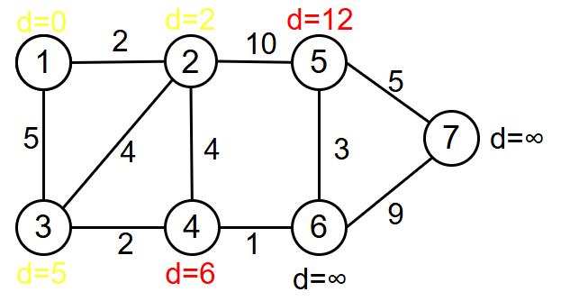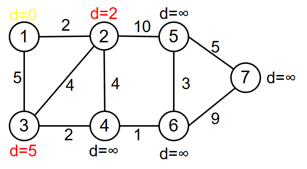 d[5]:∞->d[2]+10=12