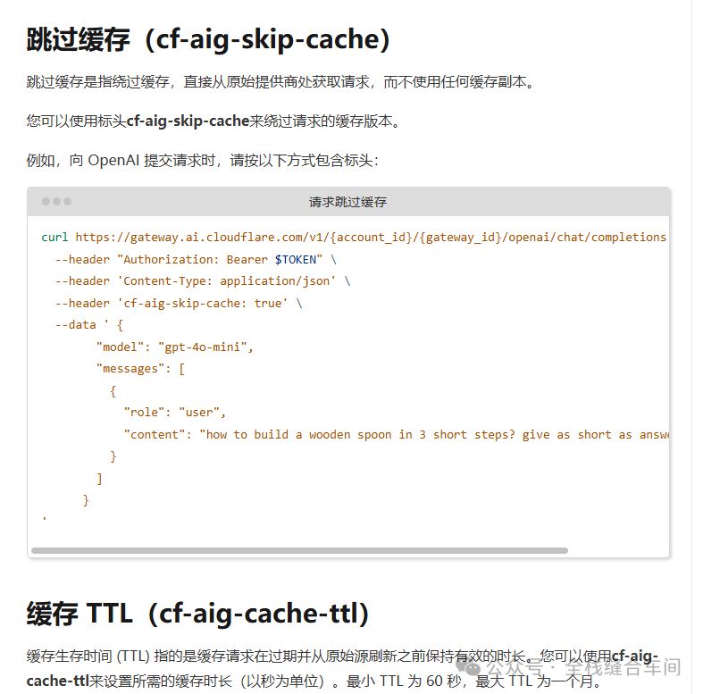 跳过或者设置缓存有效期的文档:https://developers.cloudflare.com/ai-gateway/features/caching/