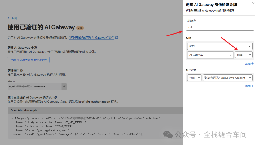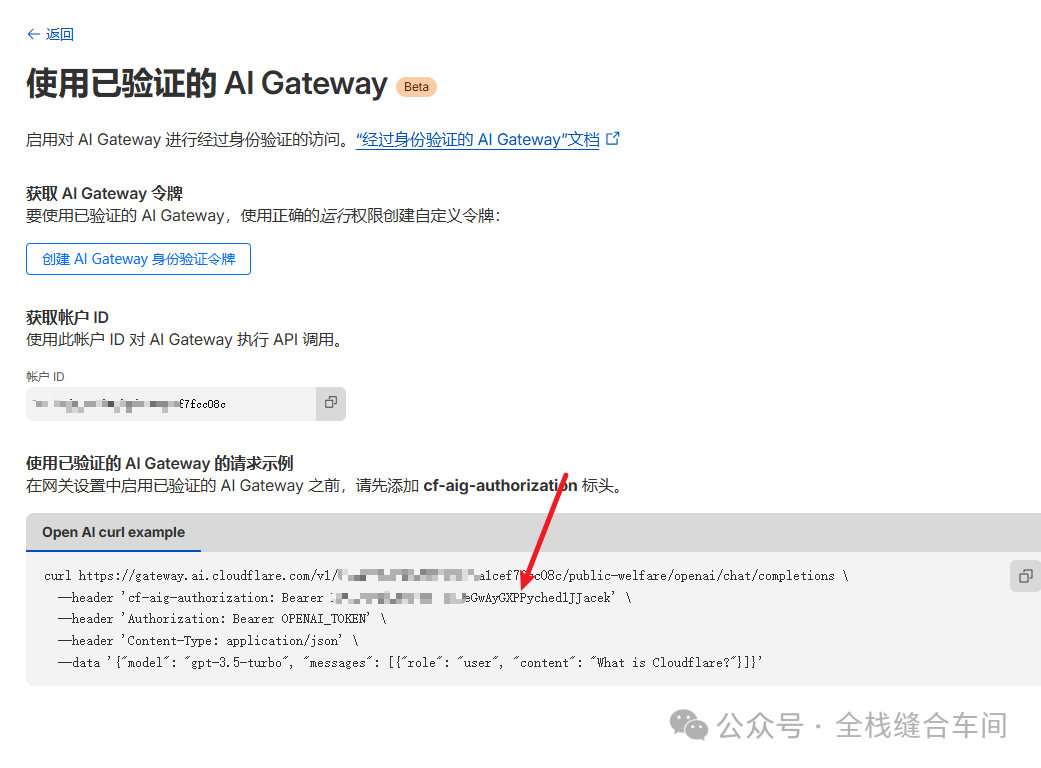 记下生成的令牌,通过cloudflare AI gateway请求自定义大模型的curl: