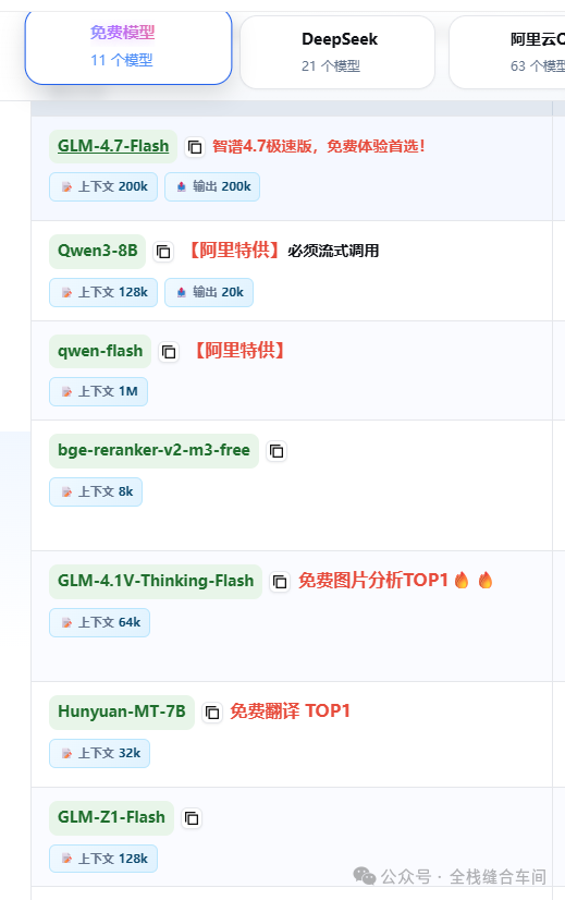 这个就是自定义服务商支持的模型名称了,比如dmxapi有这些免费模型: