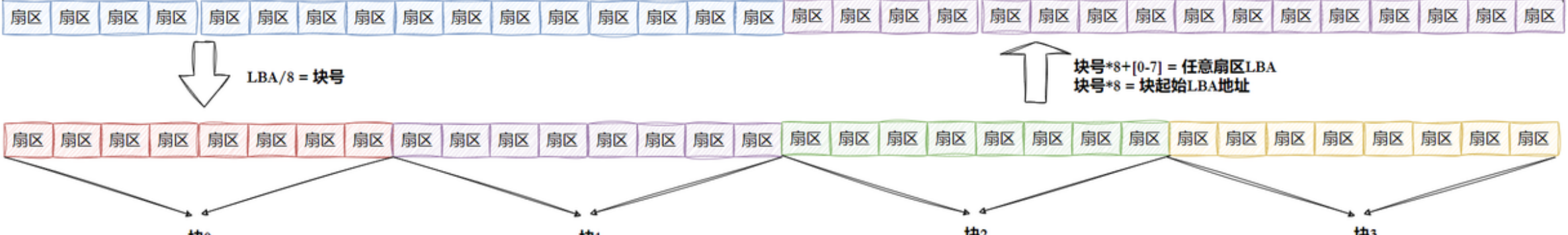 知道LBA:块号 = LBA/8