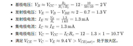 - 直流路径:RE仍提供稳定偏置;
