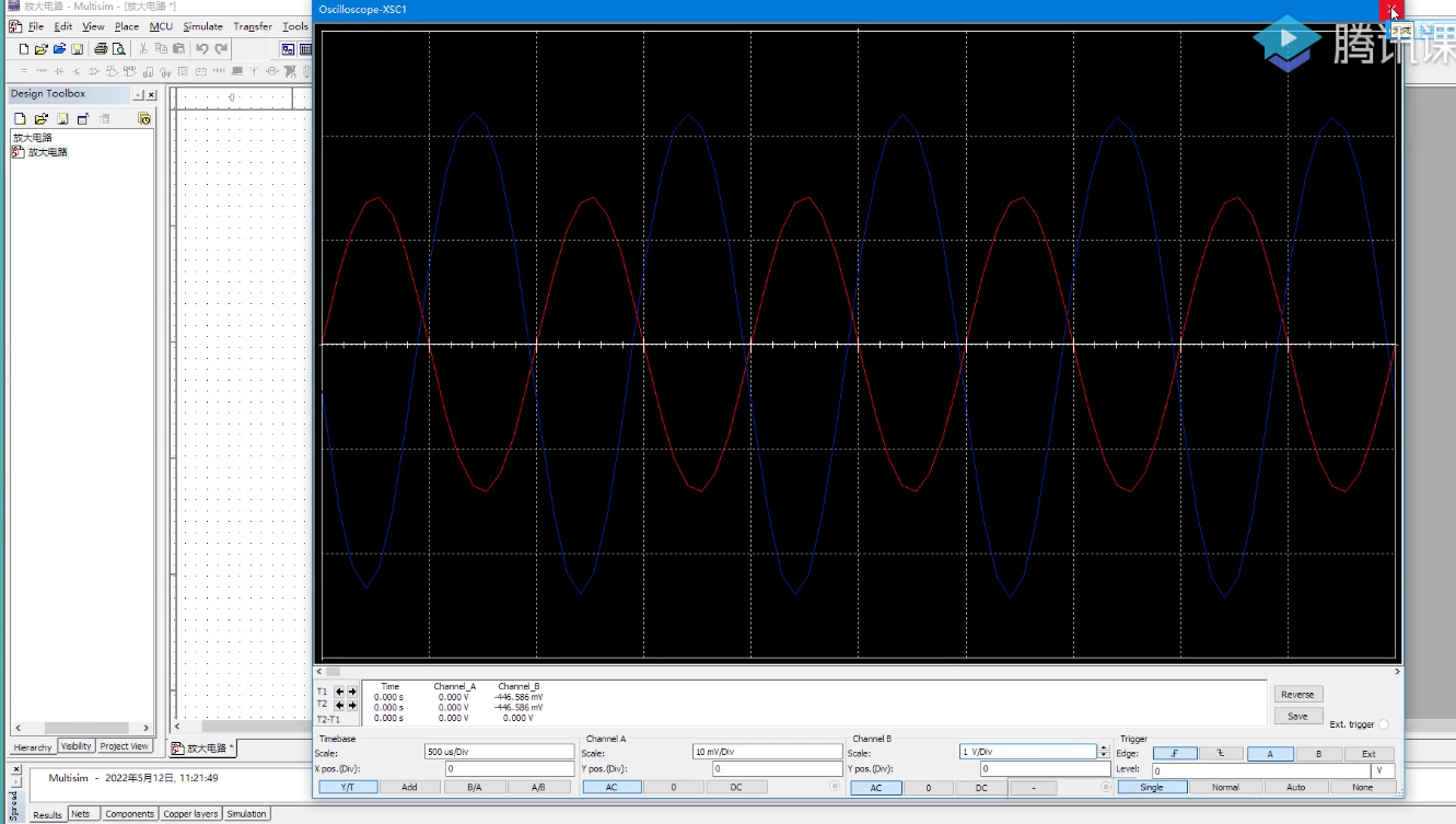 - 调出示波器(Oscilloscope),观察波形幅值、相位、失真。