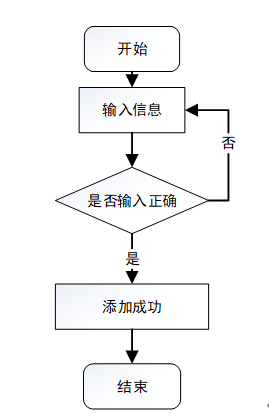 然后是添加信息的页面。进入该页面后,页面会出现一个提示框,示意操作者可以进行信息的添加,从而进行下一步的操作。用户输入想要添加的信息后提交,系统会对输入的内容进行检测。如果检测后输入的信息正确,则会出现“添加成功”的提示框,从而可以进行下一步操作;如果系统检测后检测到想要添加的信息不符合规范要求,则会提示报错,需要进行修改后重新添加。添加信息流程图如图3-2所示: