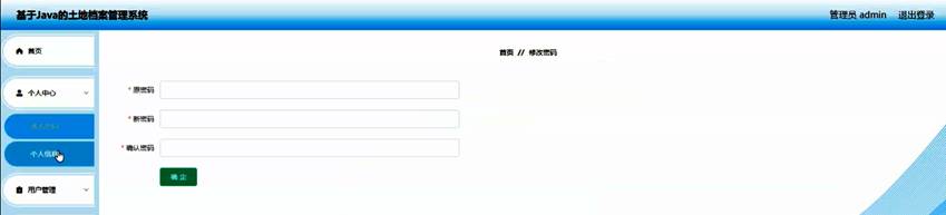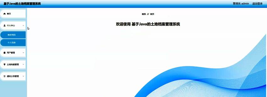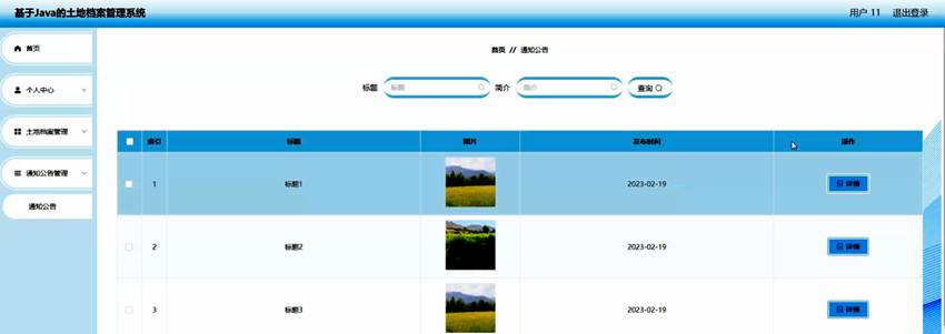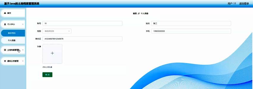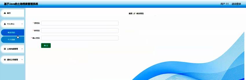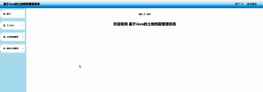 用户进入到系统后,可以对个人中心、土地档案管理、通知公告管理等功能模块进行管理,用户功能页面如下图所示: