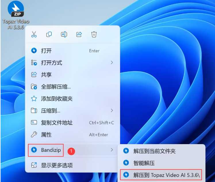 1、下载Topaz Video AI 5.3.6软件安装包到电脑上,右键选择【解压到Topaz Video AI 5.3.6\\】