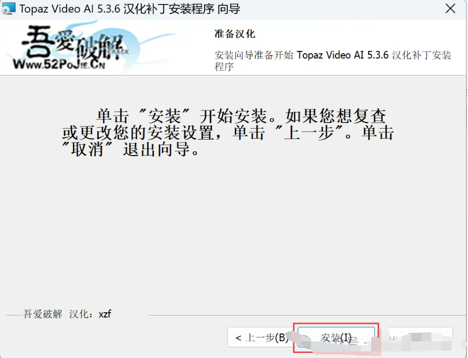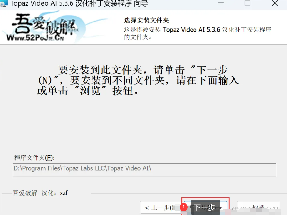 12、回到Topaz Video AI 5.3.6文件夹,找到【Topaz Video AI 5.3.6安装版汉化补丁】应用程序,右键选择【以管理员身份运行】它