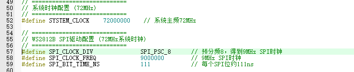 // WS2812B SPI驱动配置 (72MHz系统时钟)