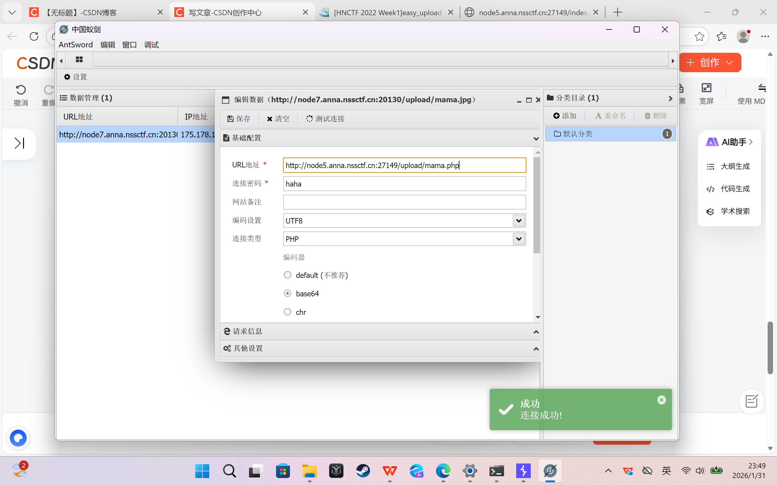 成功!上蚁剑!