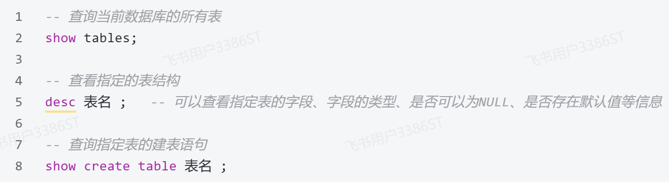 关于表结构的查看、修改、删除操作,工作中一般都是直接基于图形化界面操作。