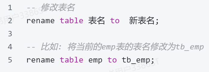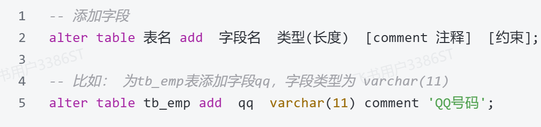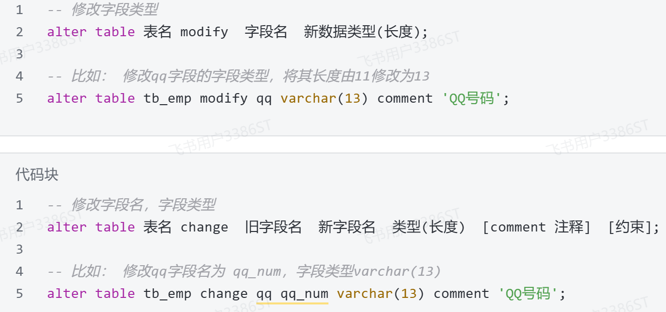 - 修改数据库表结构的具体语法: