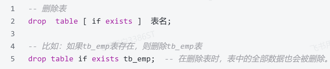 删除表结构