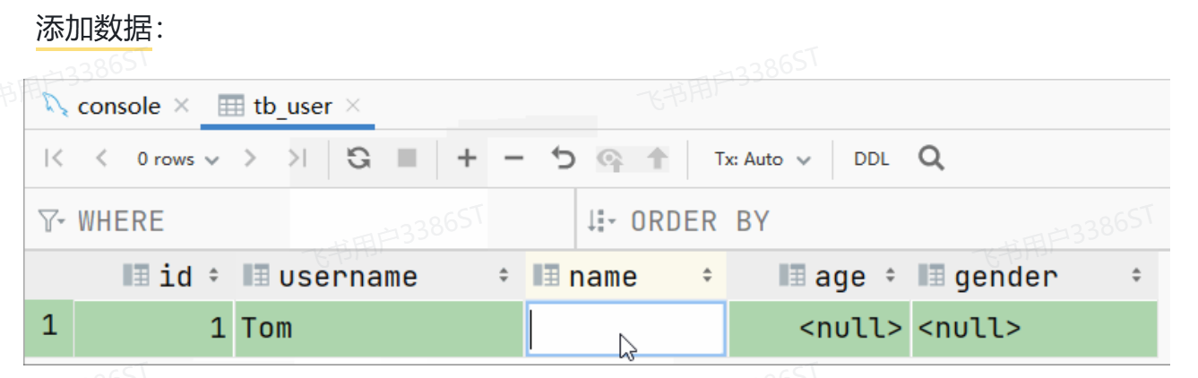 - 每次插入新的行记录时,数据库自动生成id字段(主键)下的值