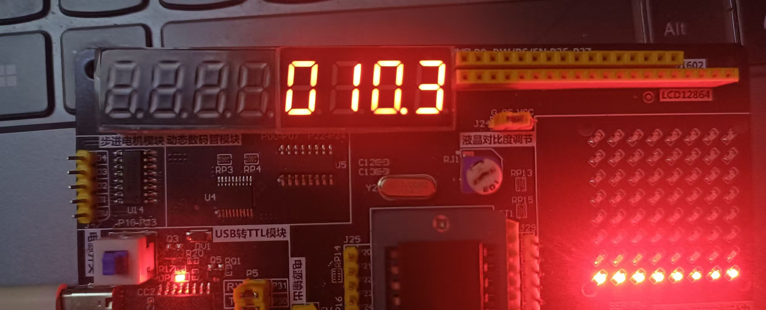 因为前面在读取温度时乘了10,相当于只保留一位小数,所以这里的百位就从原来的value/100变成value/1000,后面同理。在将温度值四位数据都写进数组tem_buf[]后,数码管显示函数从8位数码管的第四位开始依次显示。
