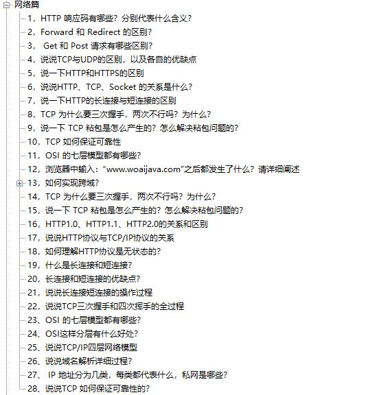 一般来讲现在Java面试最需要贮备的就是这几大方面:Java基础+数据结构和算法题 + 计网 + 设计模式 + 数据库 + 开发框架(SSM)+中间件技术。所以LZ下面展示也以这几大块为大家展示这份金九银十Java面试通关宝典。需要完整版的小伙伴 点击文末小卡片 即可!