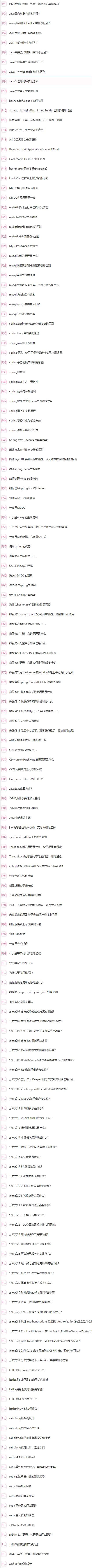 Java基础、JVM多线程、Spring、MyBatis、SpringBoot、MySQL、SpringCloud、Dubbo、Nginx、MQ、数据结构与算法、Linux、Zookeeper、Redis、分布式、网络、设计模式、maven、ElasticSearch、tomcat、Git等