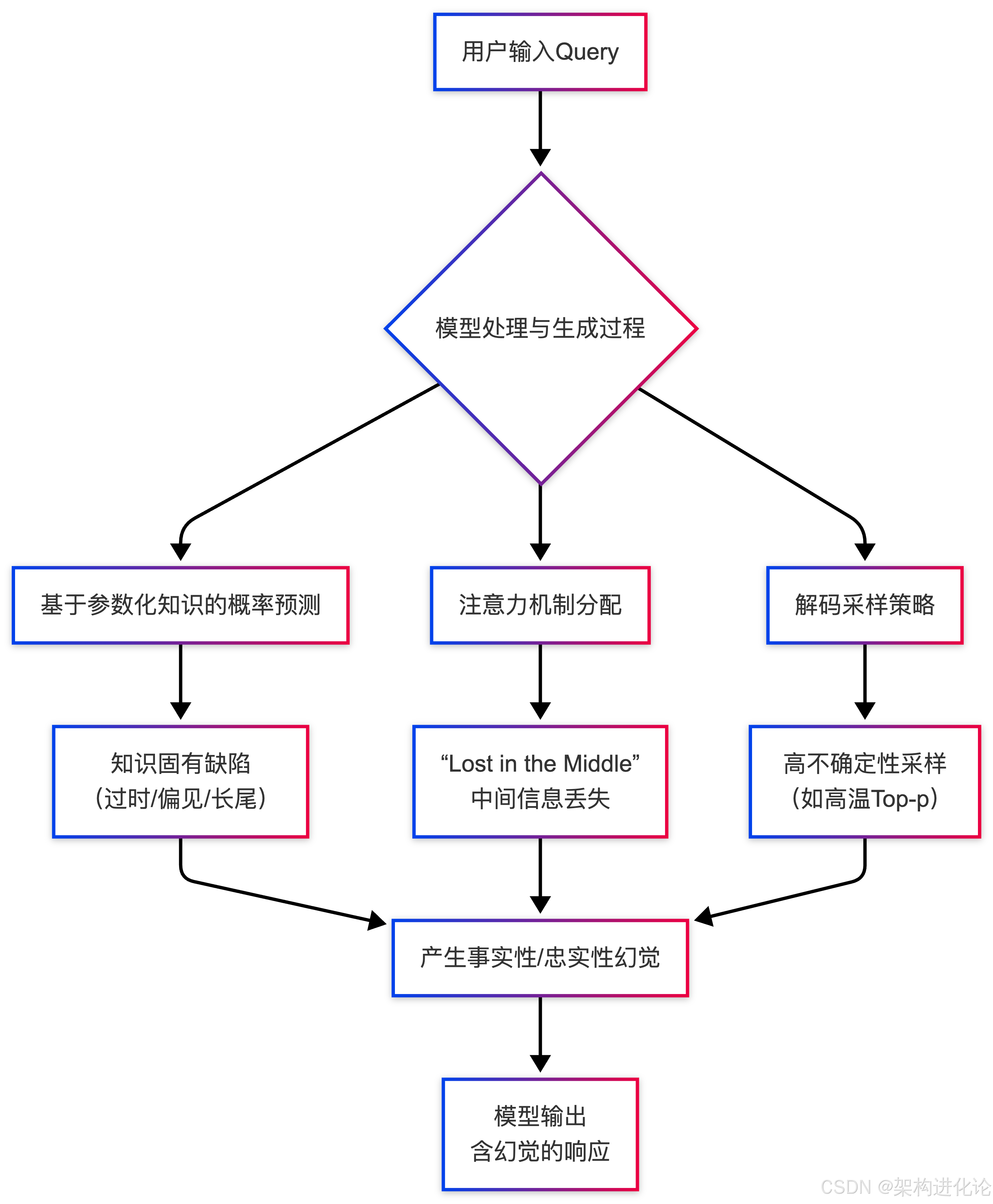 以下流程图概括了幻觉产生的核心路径: