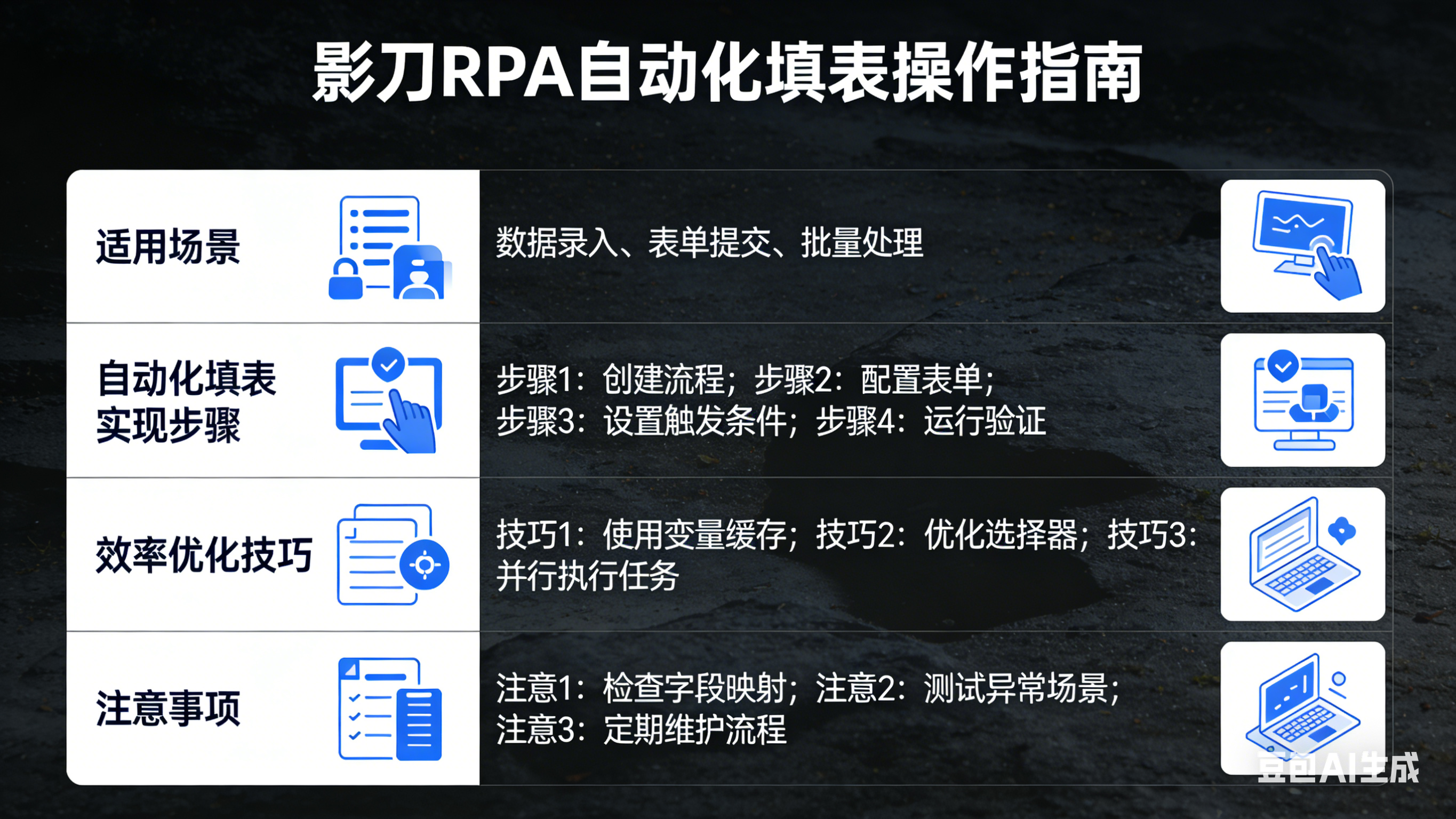 - 涉及验证码的表单需配合OCR模块或人工干预节点