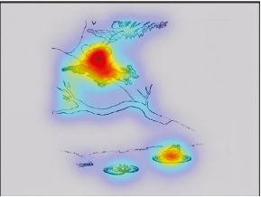 外部因素需要特别提到一种显著性算法(Garcia-Diaz,Fdez-Vidal,Pardo和Dosil,2009),这种显著性是基于在多个大小尺度上分析图像元素的方向,并找到与图像其余部分最不同的区域。例如,通过计算这种显著性,图3(a)显示了最高显著性的区域(即最有可能吸引观众注意力的区域)是男孩的头部和树的腿。为了验证该算法的正确性,研究人员统计了39名被试在观看此图像时的实际注视点平均图,即图3(b),实验证实了两张图具有高度的一致性。