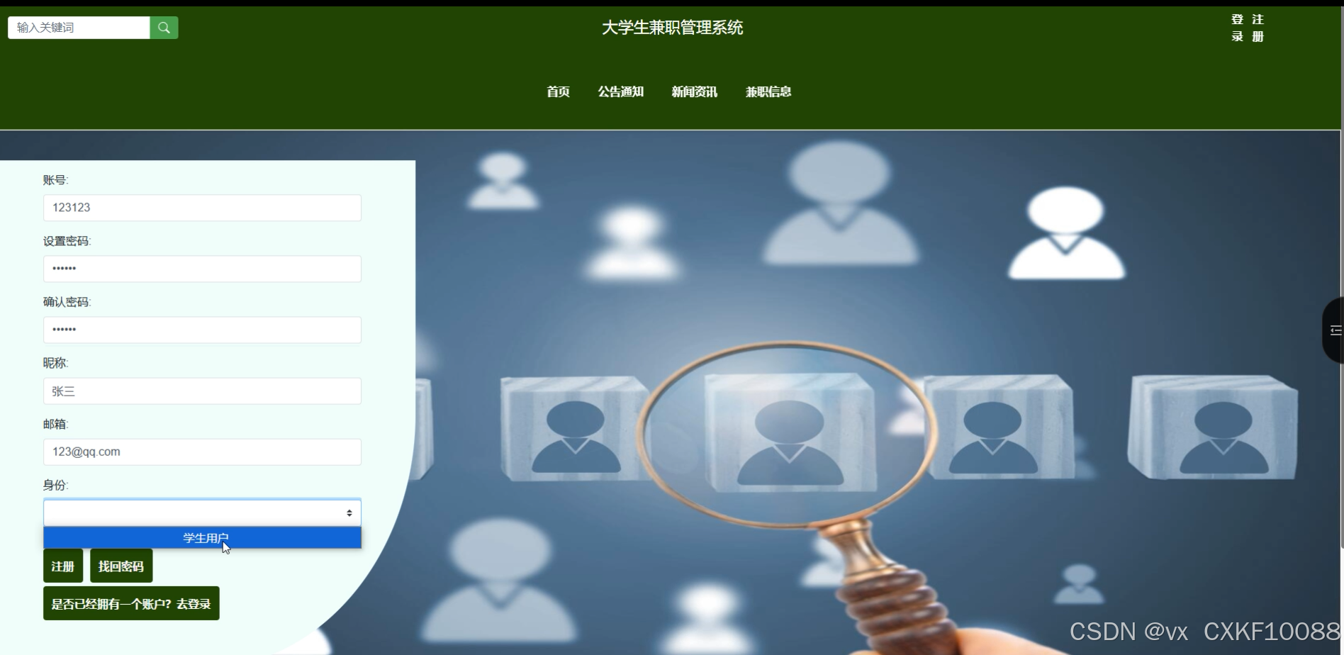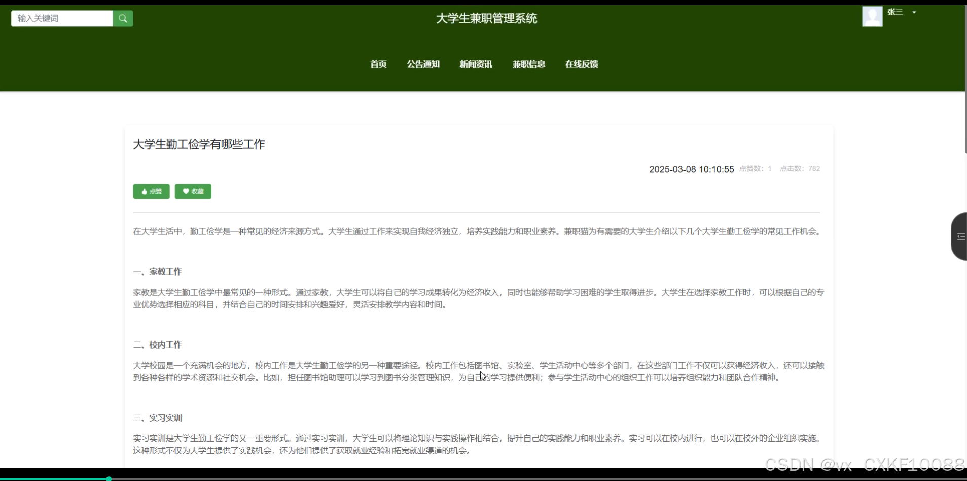 关键词:SpringBoot,大学生兼职,管理系统,兼职信息,企业招聘