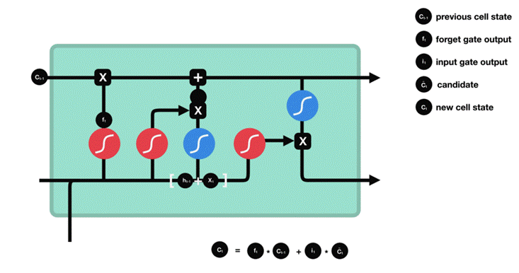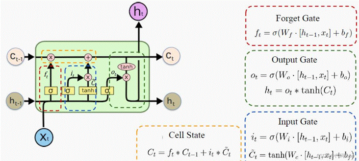 记忆单元:记忆单元是 LSTM 网络的核心,它类似于一个传送带,贯穿 LSTM 单元的整个链条。记忆单元可以在序列的处理过程中长时间地保存和传递信息,它能够选择性地更新和遗忘信息,从而实现对长期依赖的建模。记忆单元的状态用Ct表示,在每个时间步t,它根据遗忘门和输入门的控制,决定保留哪些旧信息以及添加哪些新信息。
