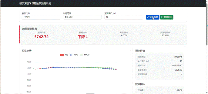 系统实现:基于 Django 框架搭建股票预测系统,将训练好的模型集成到系统中。设计友好的用户界面,实现数据输入、预测结果展示、可视化分析等功能,方便用户使用和理解。对系统进行测试和优化,确保系统的稳定性、可靠性和高效性。