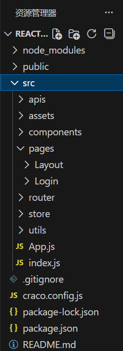 在cmd上输入npx create-react-app 进行下载,第三个为名称位置(没有npx的话请移步到其他帖子哦),接下来删掉多余的页面,将页面整理为这个样子