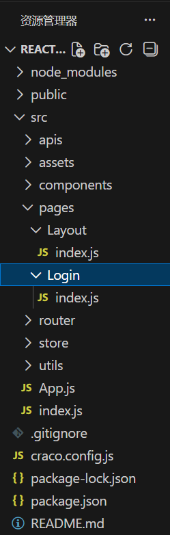 所有代码都挤在一起是不是很不美观,也不方便维护。所以我们要将项目拆解开,拆解的原则按照一个页面一个文件夹,放在pages文件夹内,并留出一个index.js文件。见下图