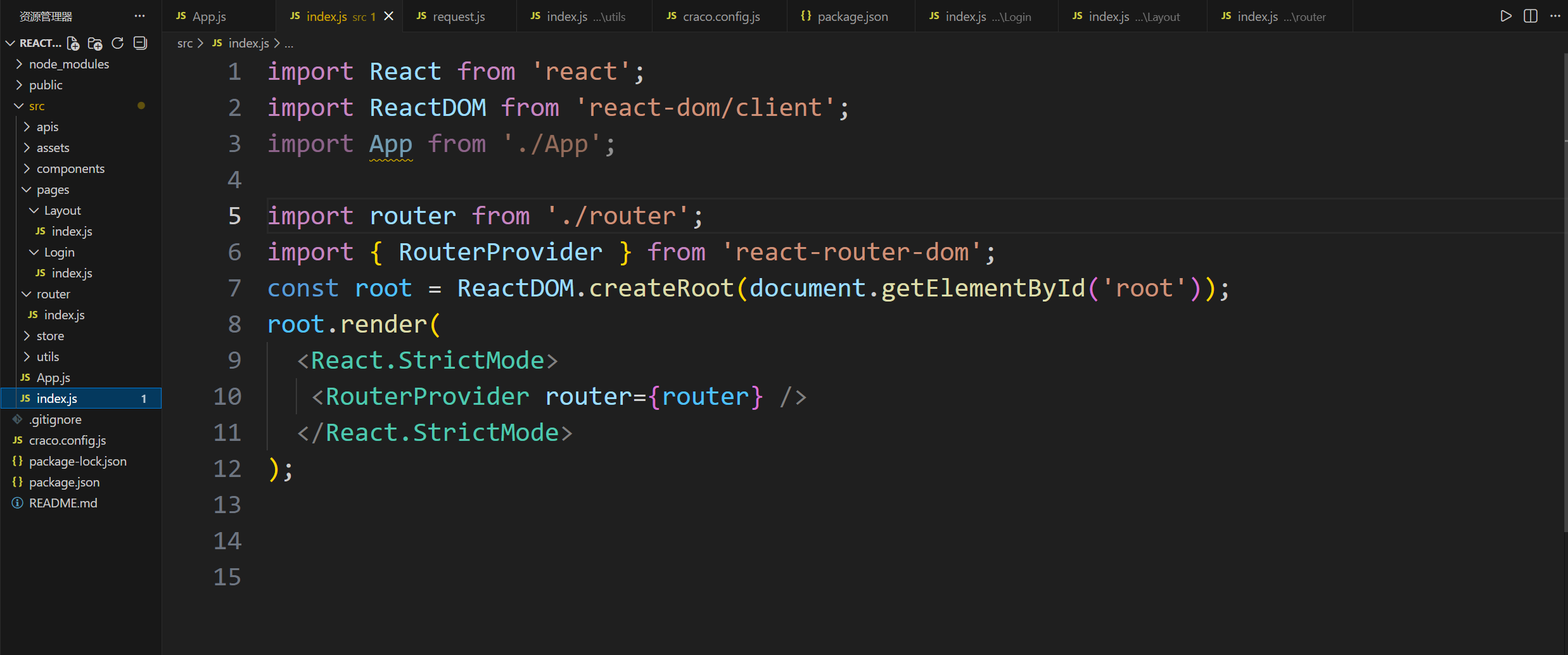 导出之后我们就可以进行应用,将导出的router挂在最外面的index.js里面,像这样
