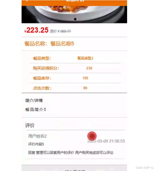 如图5.2显示的就是餐品信息管理页面,此页面提供给管理员的功能有:查看已发布的餐品信息数据,修改餐品信息,餐品信息作废,即可删除,还进行了对餐品信息名称的模糊查询 餐品信息信息的类型查询等等一些条件。